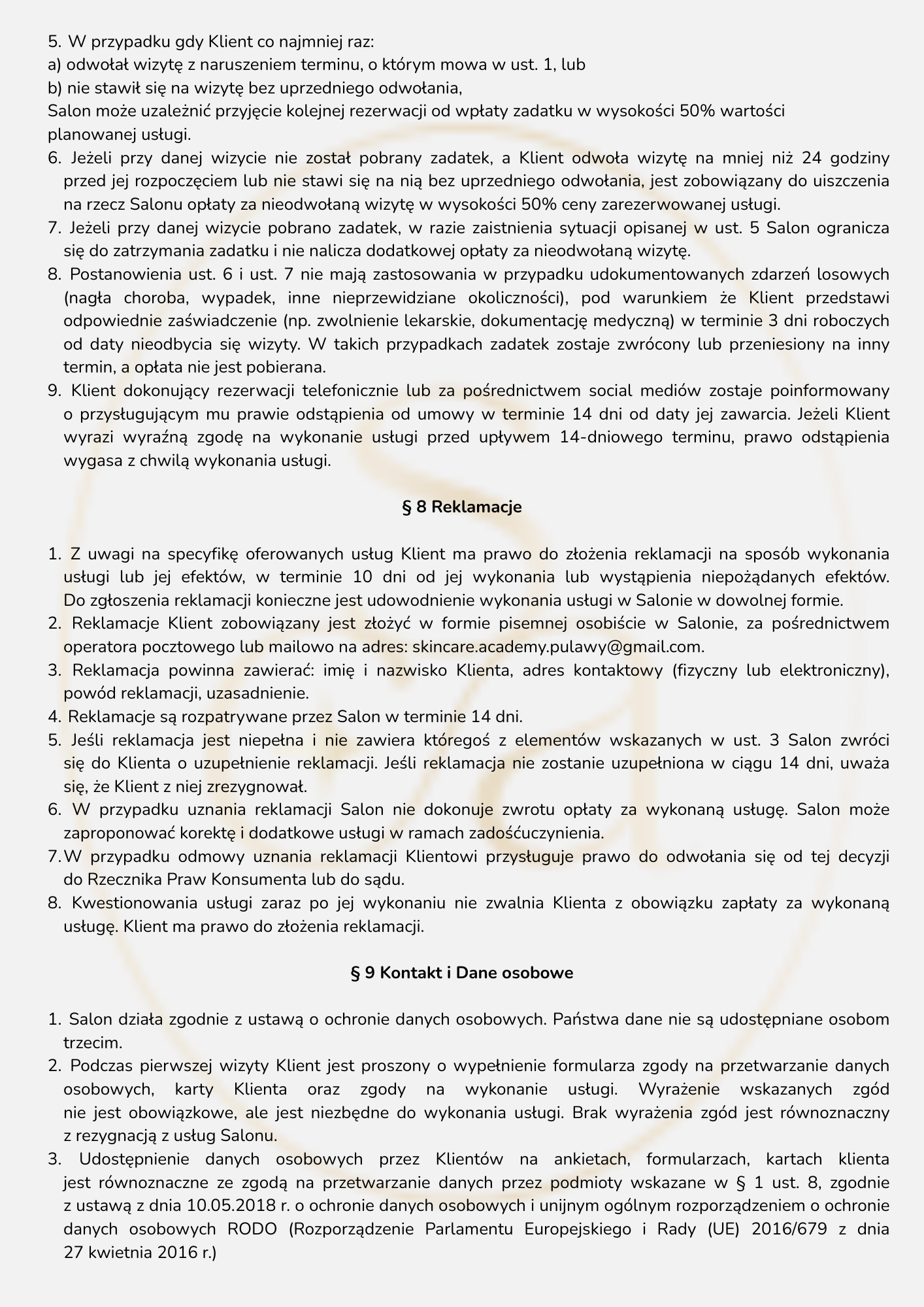 W celu umówienia konkretnego terminu wizyty pobieramy opłatę w wysokości 50 zł.